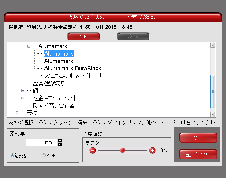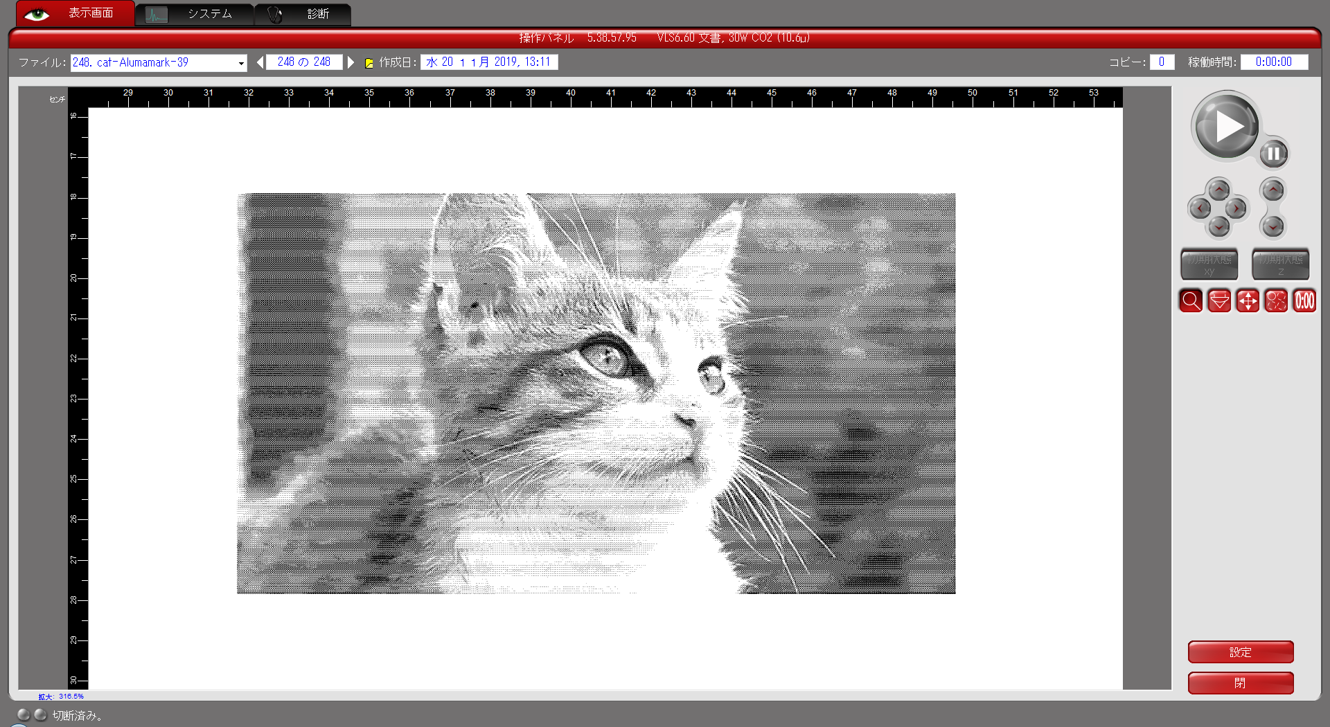 - 効果が適用されたJOBファイルが、レーザーのコントロール画面に表示されます。これでレーザーで加工する準備が整いました。
