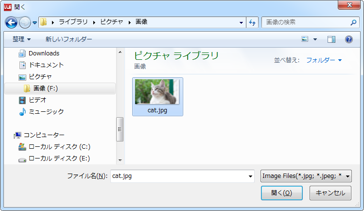 - 加工したいイメージを選択し、”開く” ボタンを押すと画像が1-Touch Laser Photo に読み込まれます。