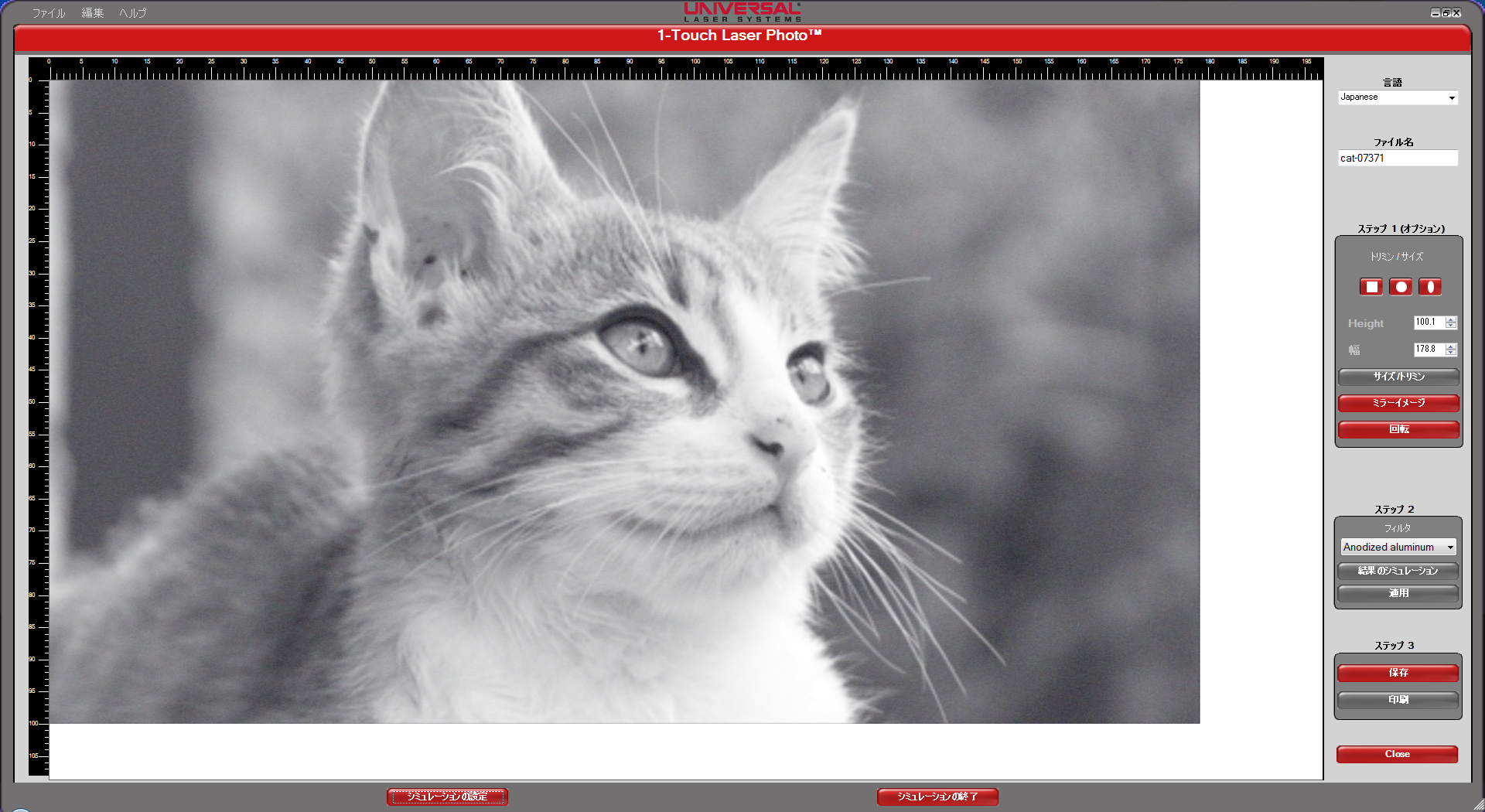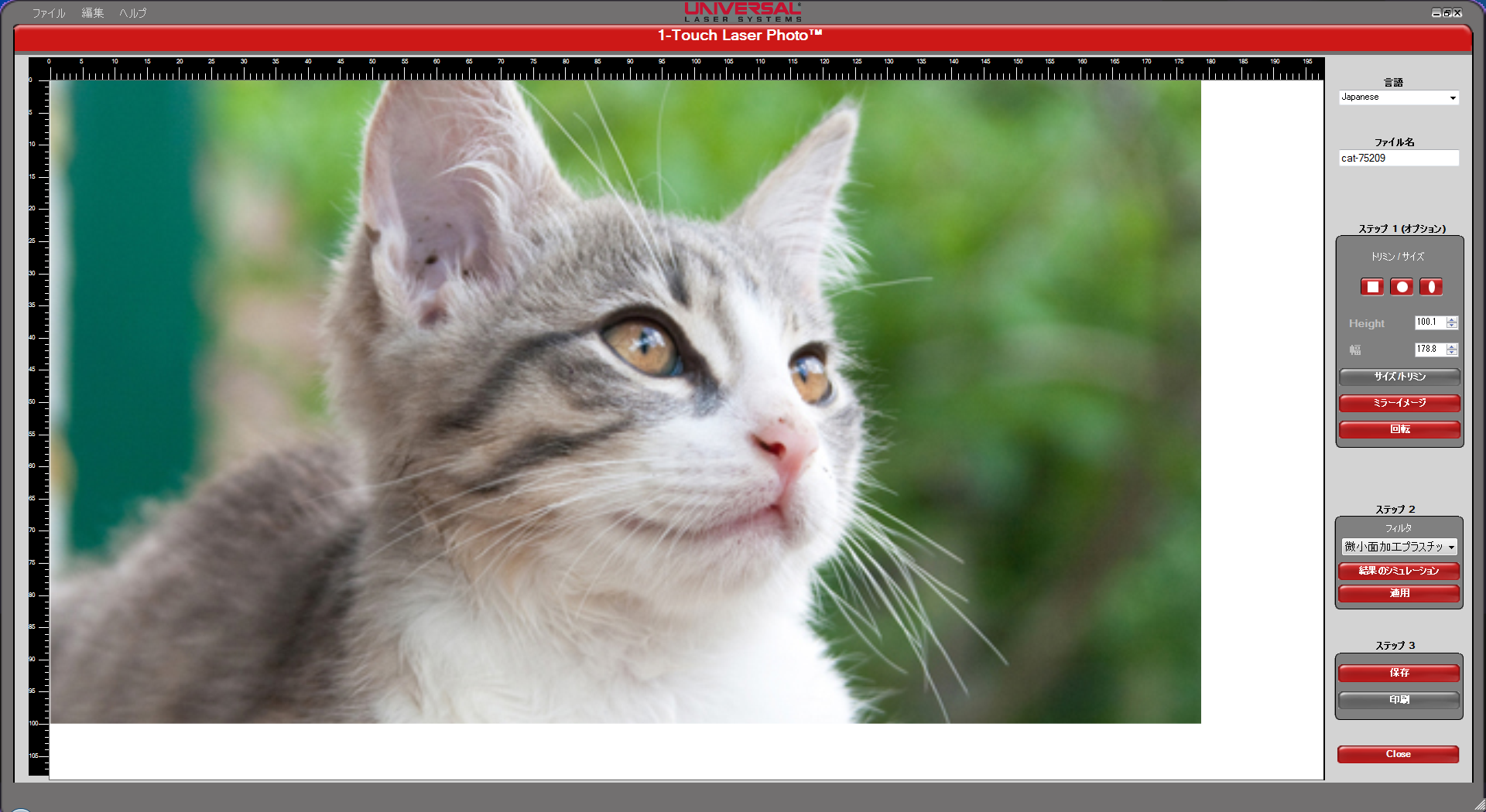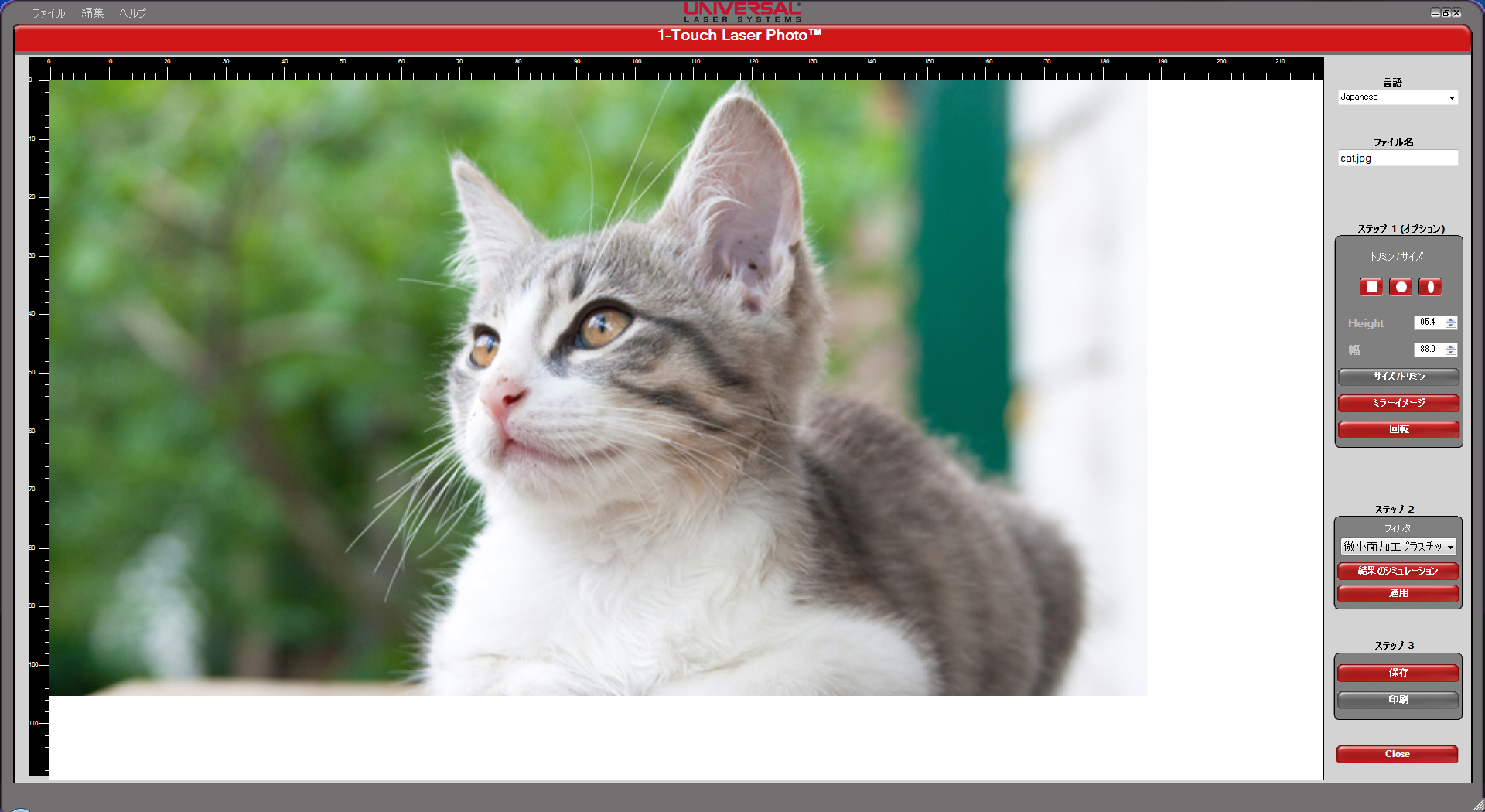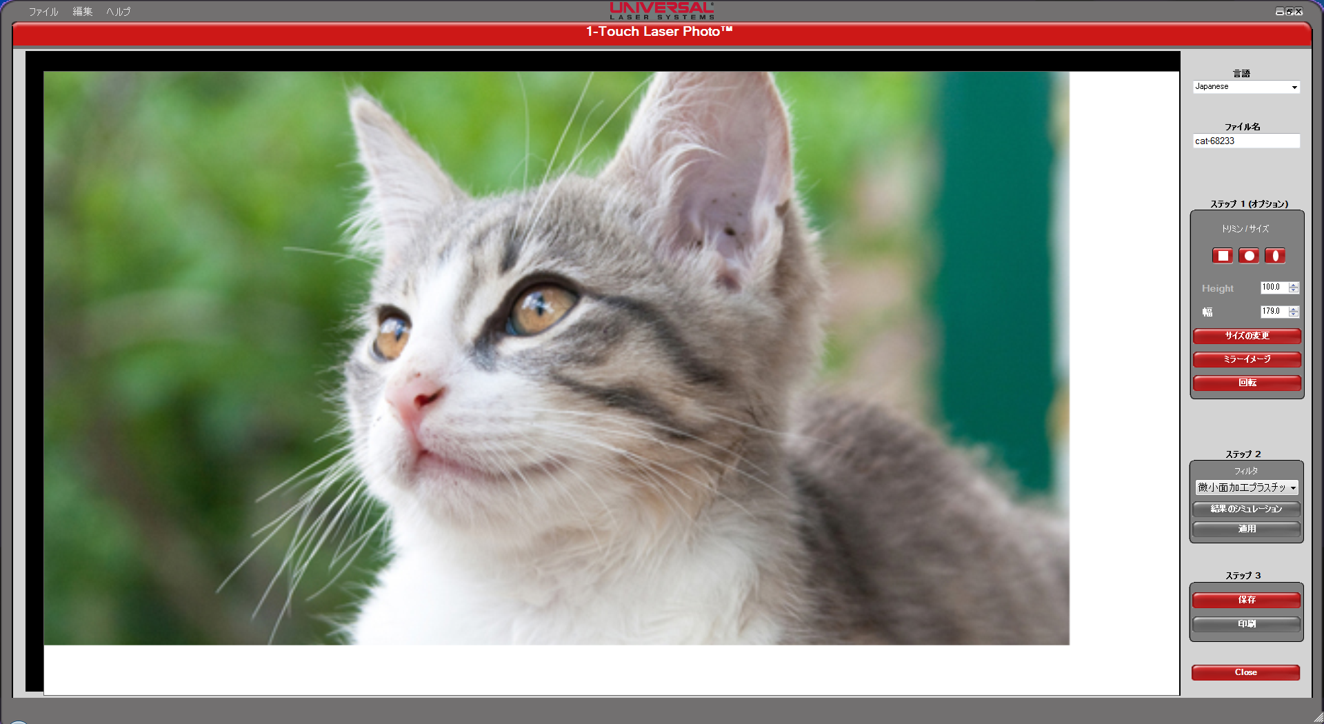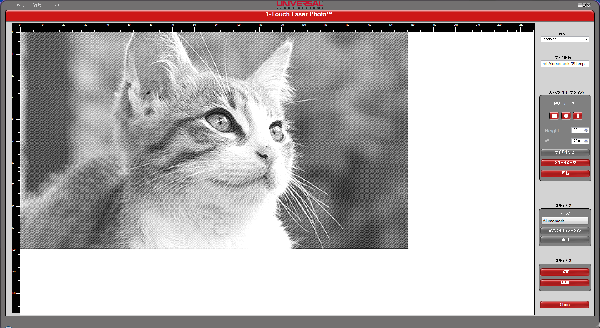” 1-Touch Laser Phtoto” は、レーザーマーキング・レーザー彫刻用専用の画像処理ソフトです。画像データに特殊なフィルタを施すことにより、加工対象となる材料や加工サイズに最も適したフィルタリング処理を施すことができます。