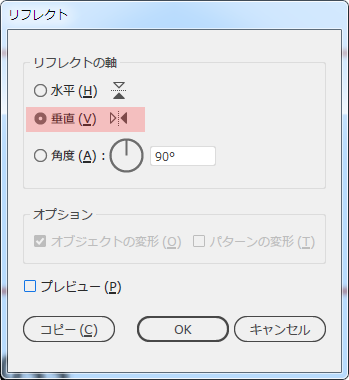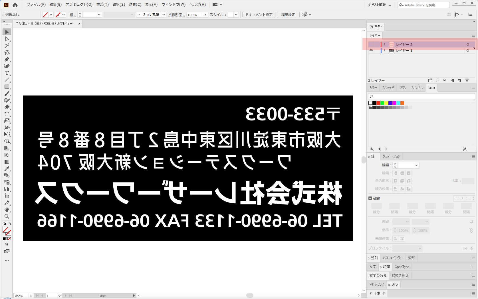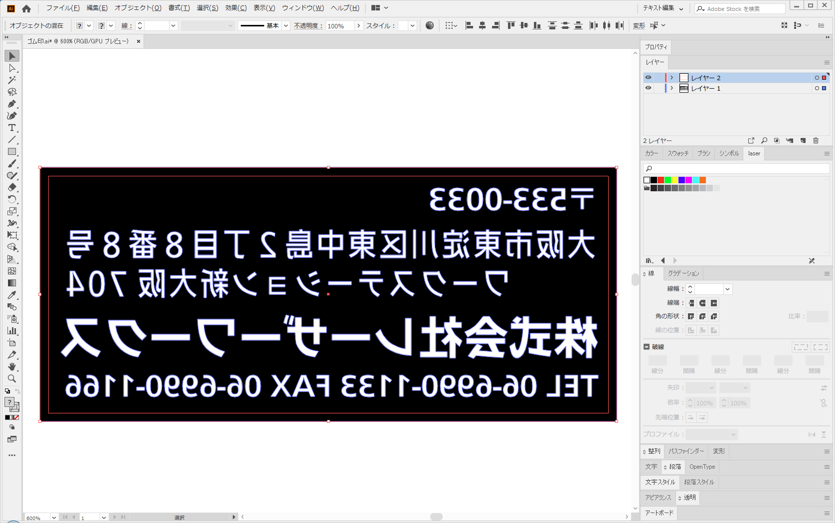 - ゴム印は、捺印した時に、正しく見える必要があります。このため、作成したデータを垂直反転してください。(リフレクト)