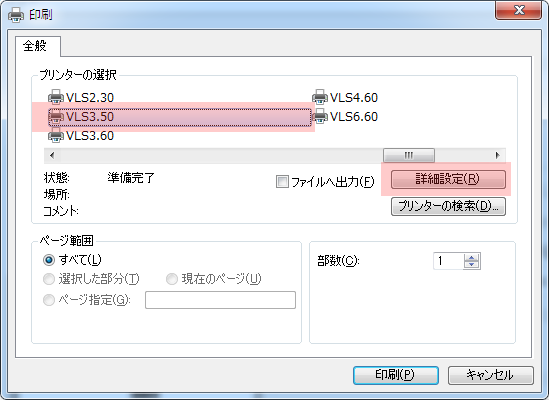 - 印刷ダイアログが表示されたら、レーザーを選択し、詳細設定(R)をクリックしてください。