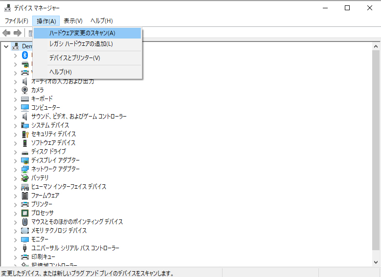 - ハードウェア変更のスキャンをクリックします。