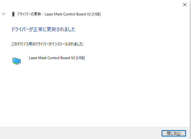- 下記のメッセージが表示されたら、閉じるをクリックしてください。