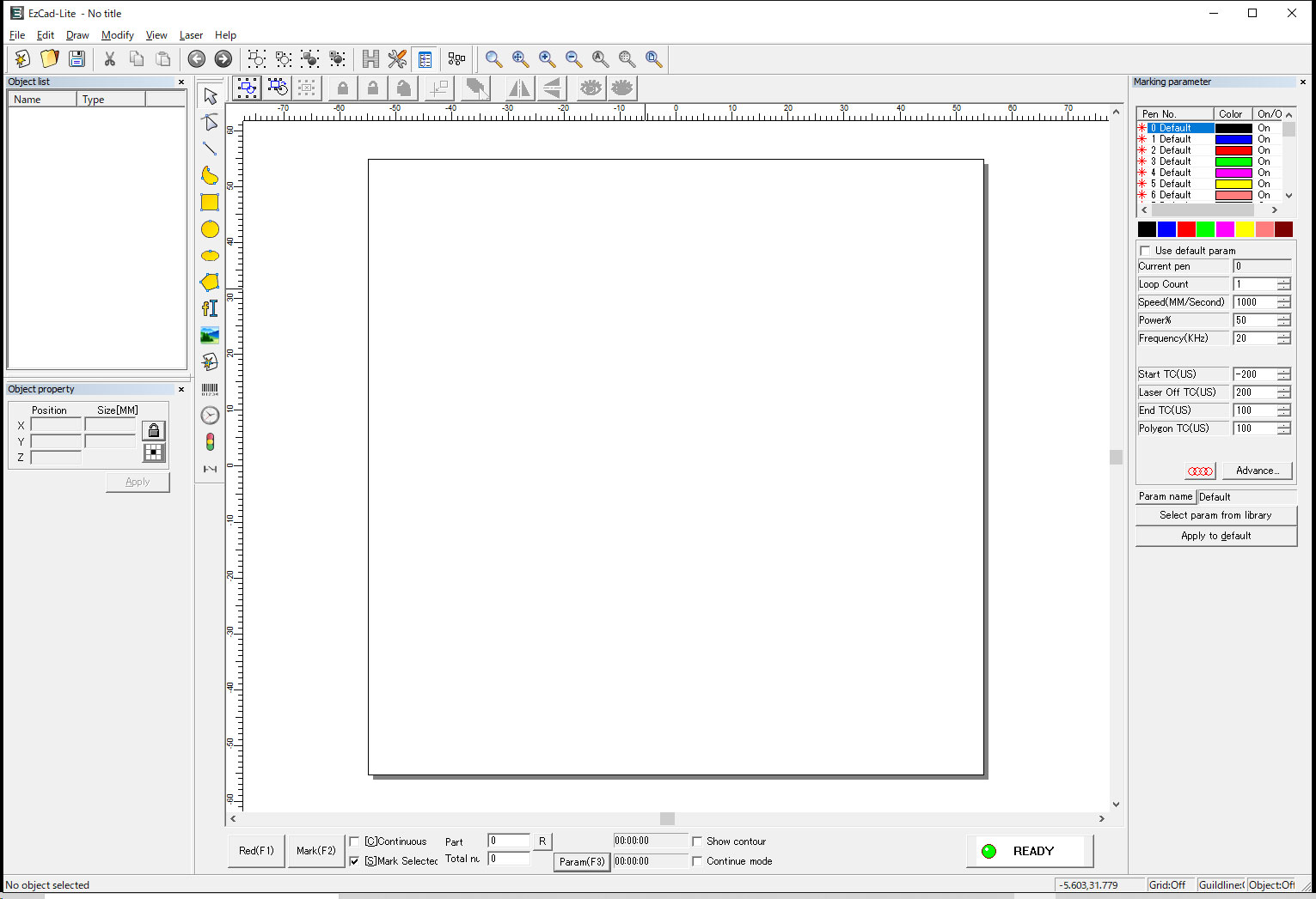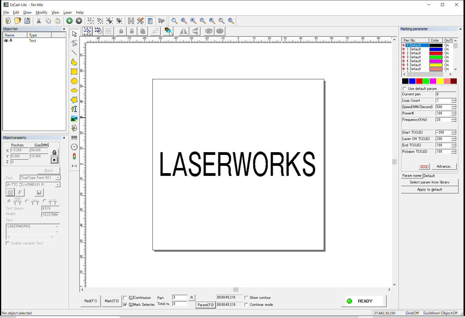 当社のマーキングマシンは、基本的にすべてEzcadで制御されます。レーザーマーキングの手順は下記となります。