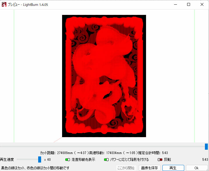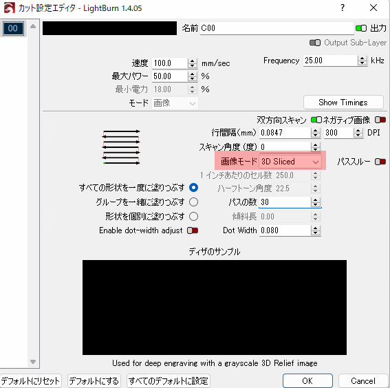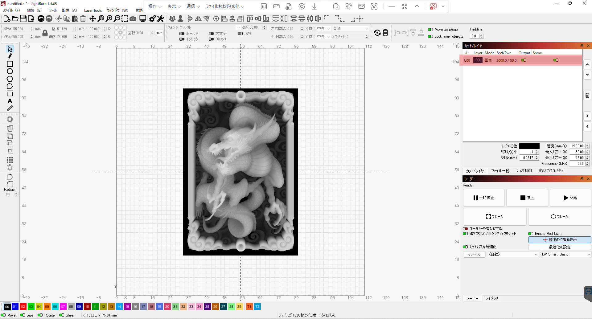 深度マップ画像をLightBurn にインポートします。